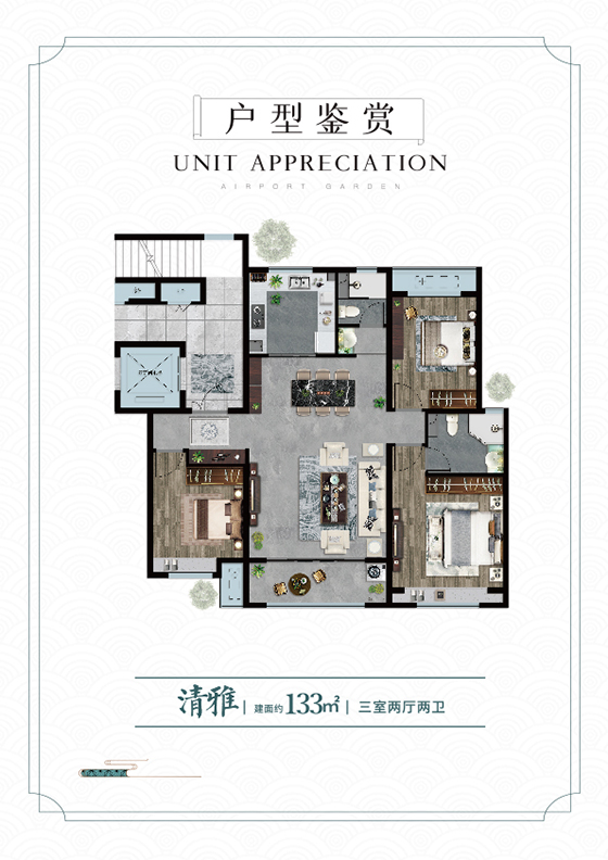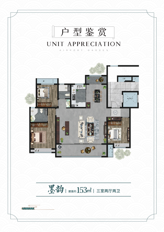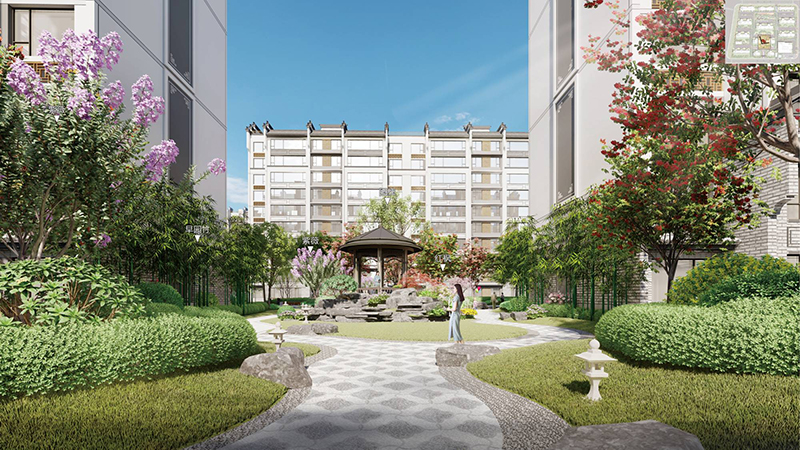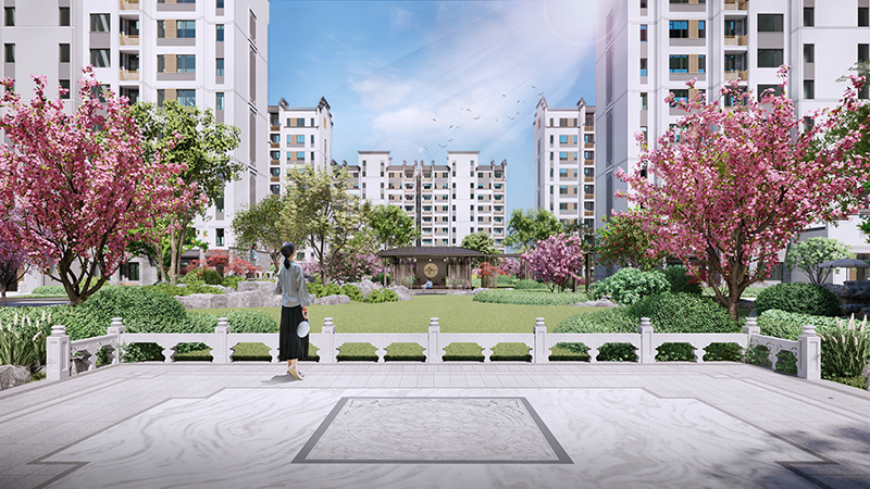 空港花園對(duì)外融入片區(qū)規(guī)劃,銜接周邊功能;對(duì)內(nèi)構(gòu)建街坊內(nèi)部禮儀秩序,打造生態(tài)宜居品質(zhì)社區(qū)。整體建筑采用徽派風(fēng)格,通過(guò)適當(dāng)?shù)慕纸峭俗屝纬砷_(kāi)合有度的街道空間,打造豐富多彩的公共界面。