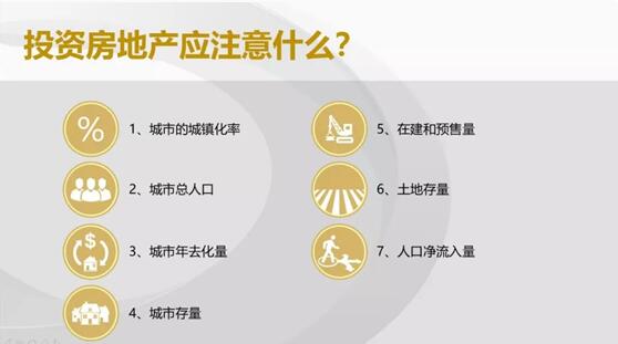 一般城市的房地產(chǎn)市場,要看這個城市的城鎮(zhèn)化率、城市總?cè)丝?、城市年去化量、城市存量、在建量和預(yù)售量、土地存量、人口凈流入量等指標(biāo)。