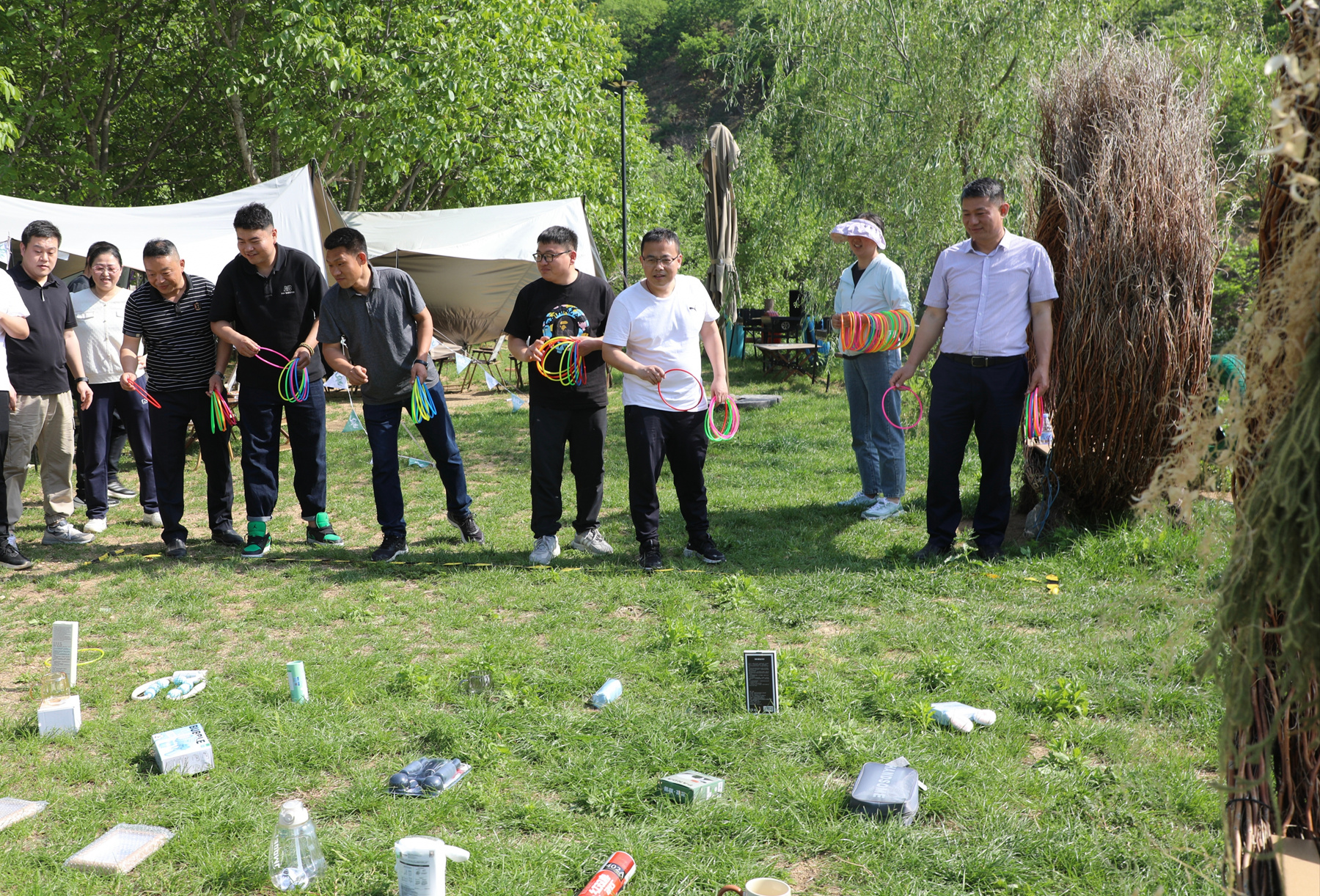 本次團(tuán)建結(jié)合了戶外露營(yíng)和傳統(tǒng)的趣味運(yùn)動(dòng)會(huì),并在游戲最后設(shè)置經(jīng)典套圈環(huán)節(jié)。參賽員工以部門(mén)為單位,采用累計(jì)積分方式,每項(xiàng)比賽按照參賽隊(duì)伍的數(shù)量決定積分上限,待所有比賽項(xiàng)目完成后,根據(jù)每隊(duì)積分總數(shù)確定最后的套圈(獎(jiǎng)勵(lì)機(jī)制)數(shù)量?;顒?dòng)過(guò)程中,每個(gè)人都踴躍參與,精神抖擻,配合默契,無(wú)不展現(xiàn)出四建地產(chǎn)人的拼搏精神和團(tuán)隊(duì)意識(shí)。在小球傳遞項(xiàng)目中,隊(duì)員們需要在最短時(shí)間內(nèi)用引導(dǎo)槽將球準(zhǔn)確無(wú)誤地傳遞給下一位,直至最后一名精準(zhǔn)投遞到指定的容器中??此坪?jiǎn)單的動(dòng)作實(shí)則考驗(yàn)了團(tuán)隊(duì)的協(xié)作能力與穩(wěn)定性。一圈到底項(xiàng)目更是對(duì)隊(duì)員間配合的極大考驗(yàn),只有彼此間信任和支持,才能保證呼啦圈不落地,順利完成接力。只見(jiàn)參賽隊(duì)員們一氣呵成,靈活穿梭于呼啦圈構(gòu)筑的“隧道”中,穩(wěn)中有序地傳遞、配合默契的動(dòng)作引來(lái)現(xiàn)場(chǎng)職工們的陣陣喝彩。最后的手腳并用則是對(duì)參賽者身體協(xié)調(diào)性的一次挑戰(zhàn),只見(jiàn)隊(duì)員們站在通道圖上大顯神通,充分調(diào)動(dòng)和啟用左右大腦,力爭(zhēng)快速、準(zhǔn)確、敏捷的沖向終點(diǎn)。經(jīng)過(guò)一番精彩絕倫的競(jìng)爭(zhēng),工程部和材料部以?xún)?yōu)異的表現(xiàn)一路領(lǐng)先,最終取得了第一名的佳績(jī)。