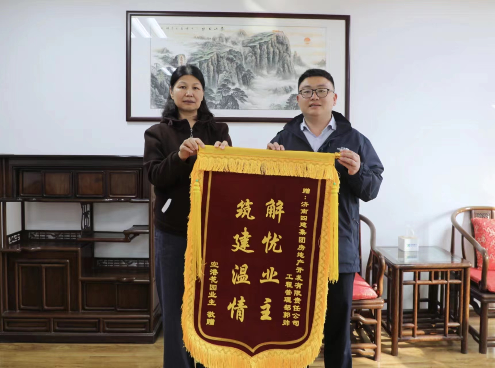 本次業(yè)主贈送錦旗事件深刻詮釋了四建地產(chǎn)“責(zé)任國企、品質(zhì)筑家”的核心內(nèi)涵。這兩面旗幟是業(yè)主對企業(yè)和員工辛勤付出的肯定,也是雙方共同譜寫的溫馨篇章。未來,四建地產(chǎn)將繼續(xù)做美好生活的同行者,以更高的品質(zhì)、更貼心的服務(wù),答復(fù)業(yè)主、回報社會。