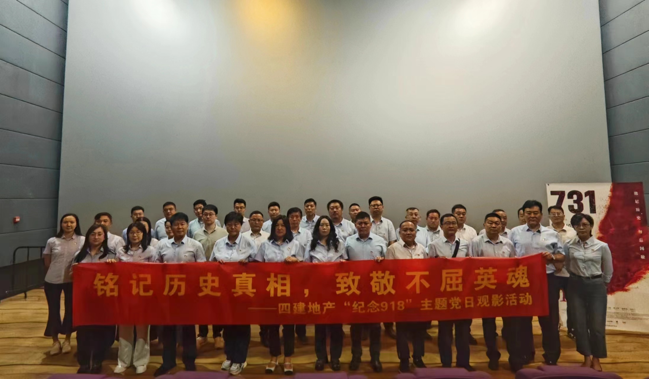2025年9月18日下午,在“九一八事變”94周年之際,為踐行社會主義核心價值觀、弘揚(yáng)愛國主義精神,在四建地產(chǎn)副總經(jīng)理、萬盛物業(yè)總經(jīng)理李勇的帶領(lǐng)下,四建地產(chǎn)黨支部組織全體黨員、入黨積極分子、青年員工代表,開展了“銘記歷史真相,致敬不屈英魂”主題觀影活動,共同觀看愛國主義教育影片《731》。