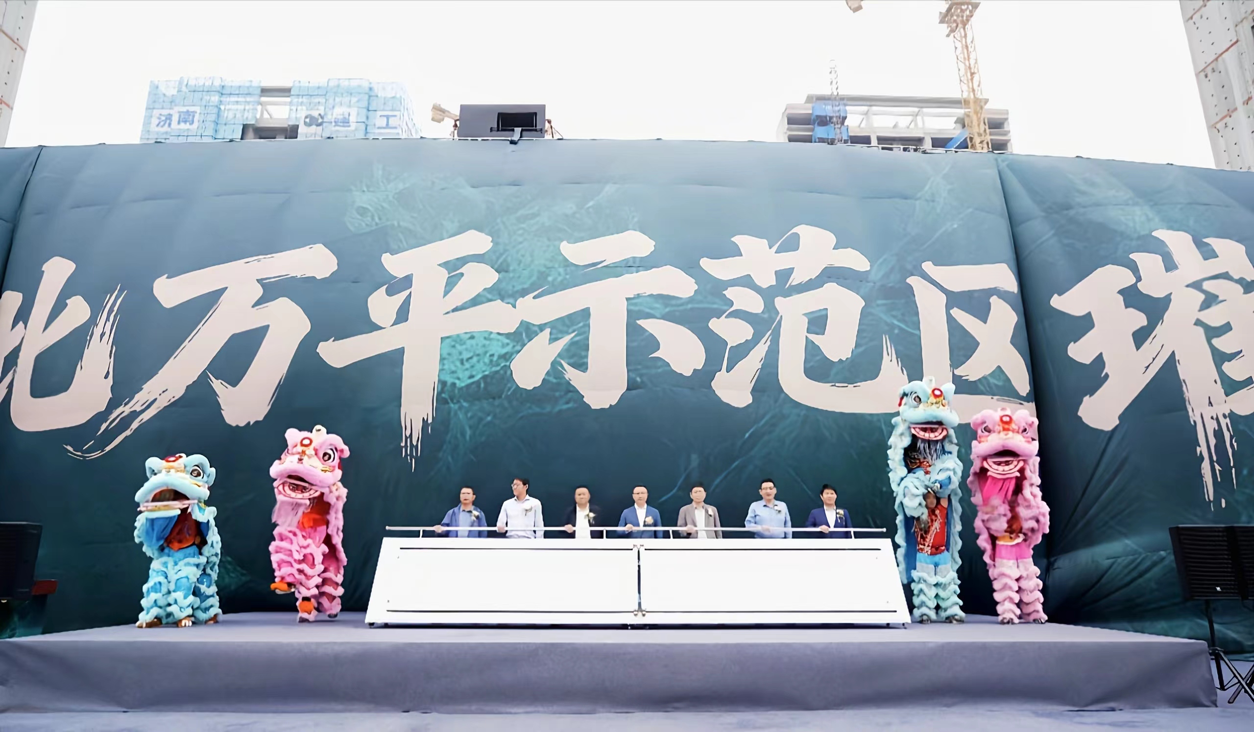 十點(diǎn)十分,祥瑞舞獅躍動(dòng)登場,昂揚(yáng)騰挪間,為項(xiàng)目注入吉祥寓意與勃勃生機(jī),將現(xiàn)場氛圍推向高潮。接著,在全場嘉賓的矚目與倒數(shù)聲中,張總攜手多位領(lǐng)導(dǎo)共同推動(dòng)啟動(dòng)桿,舞臺(tái)吸幕瞬間升起,金海瑞園恢弘的大門豁然眼前,萬平園林示范區(qū)的勝景也在此刻全景呈現(xiàn),引來陣陣贊嘆。同時(shí),舞獅吐青,卷軸鋪展,“責(zé)任國企,品質(zhì)筑家;瑞境天成,盛啟非凡”十六字宣言熠熠生輝,標(biāo)志著金海瑞園萬平園林示范區(qū)正式華彩綻放。最后,各位領(lǐng)導(dǎo)在舞臺(tái)上合影留念,定格這一意義非凡的瞬間。